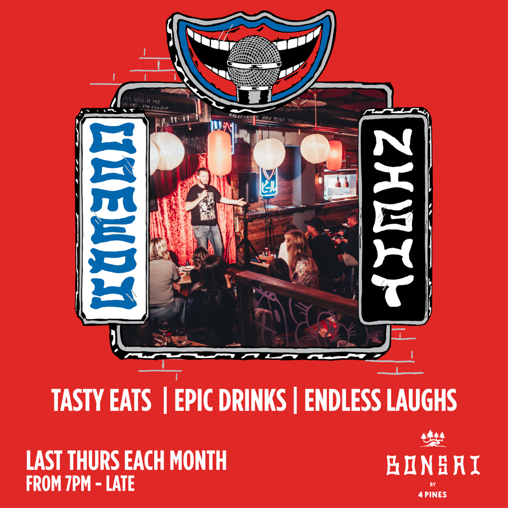 Canned Laughter are taking over Bonsai the last Thursday of every month to host a mid-week Comedy night! Enjoy a fresh pint and tasty feed whilst adding a little laughter to your mid-week blues. Bonsai’s vibrant Izakaya will be serving up our incredible Japanese bites, with custom cocktails & of course 4 Pines beer flowing from the taps – all while you sit back & have a night off from thinking about anything other than that slightly inappropriate joke..