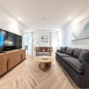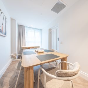 Across all room types, guests will enjoy dual air conditioning, complimentary Wi-Fi, and Smart TVs for easy entertainment. Each apartment includes a fully equipped kitchen with complete cooking facilities, a full-sized refrigerator, and an espresso and tea machine stocked with complimentary essentials—perfect for a self-contained stay. Built-in wardrobes in every bedroom ensure ample storage, while the inclusion of study and dining spaces makes these apartments especially suited to extended stays or remote work.
