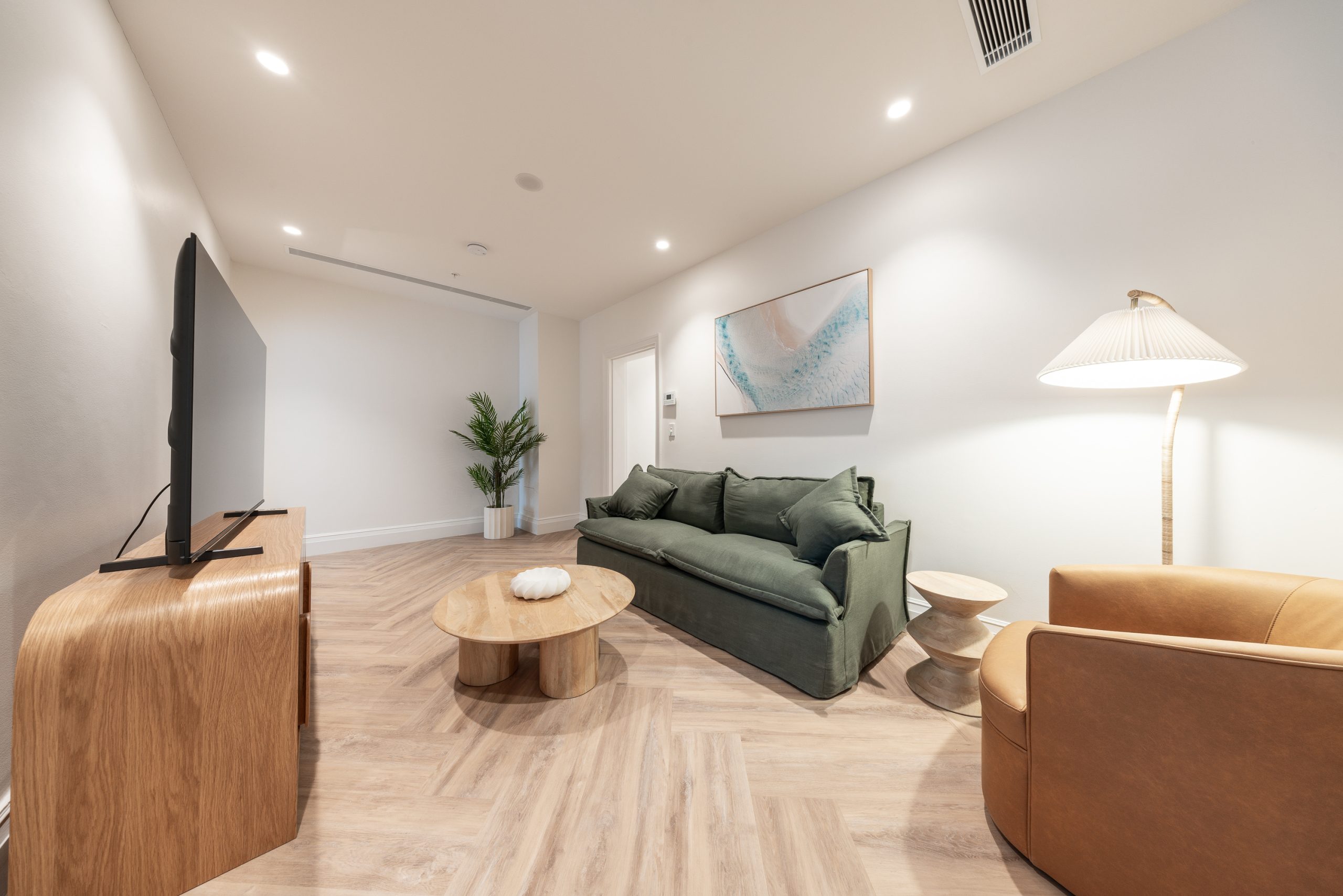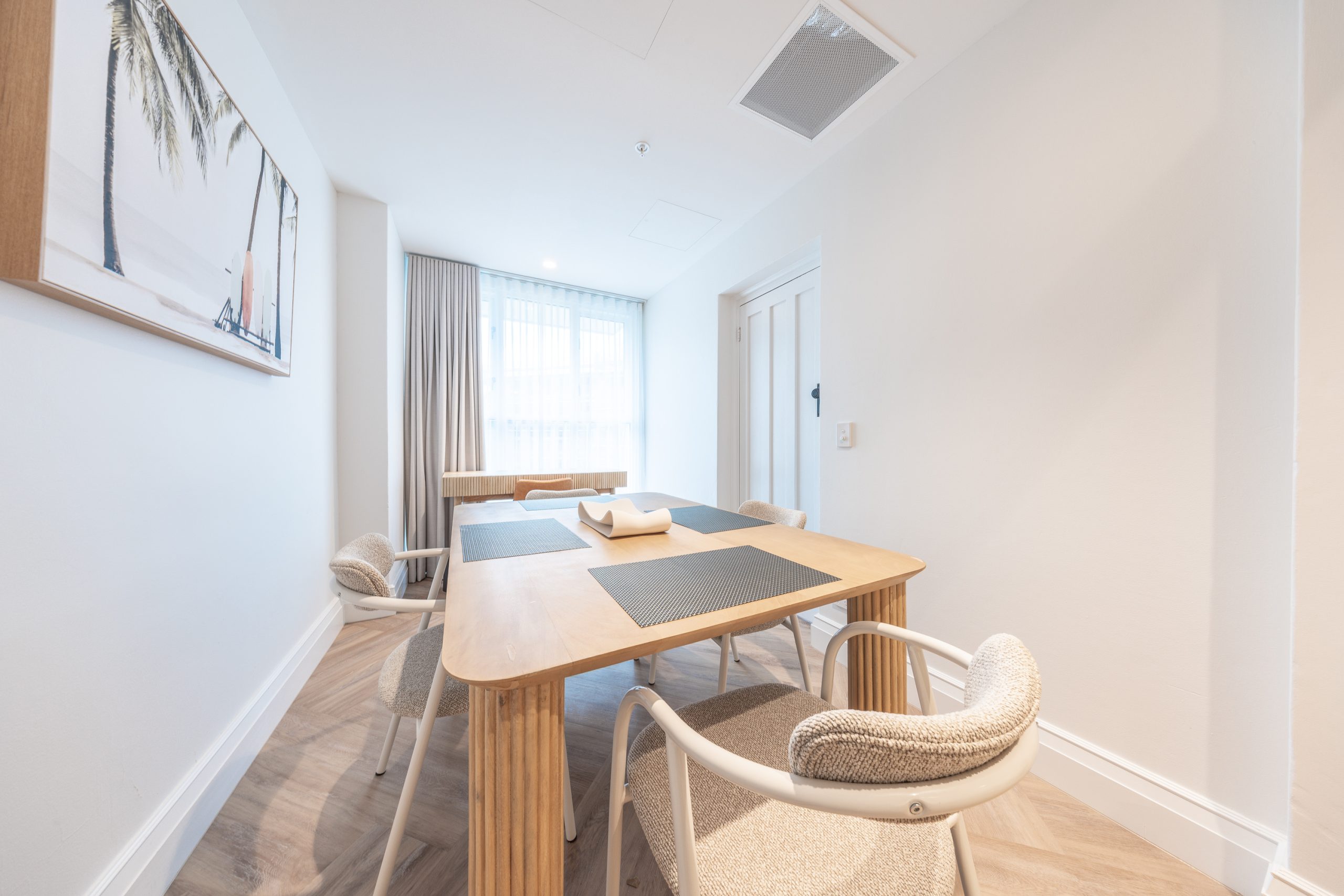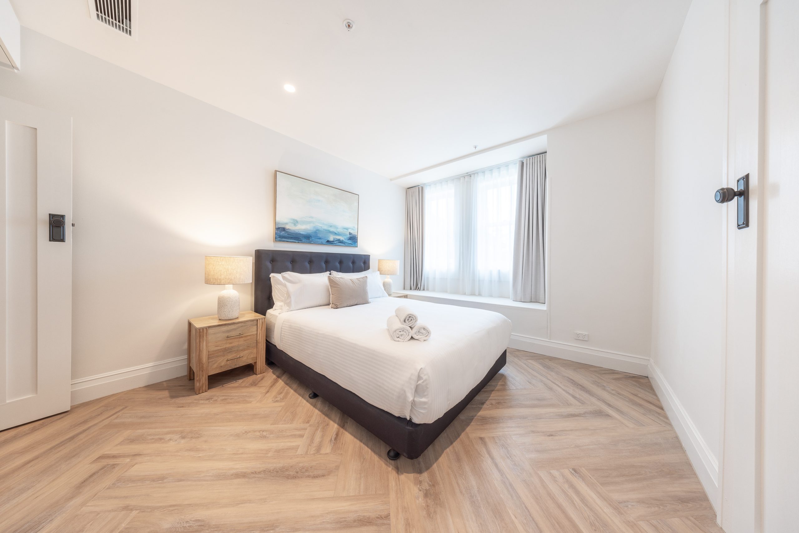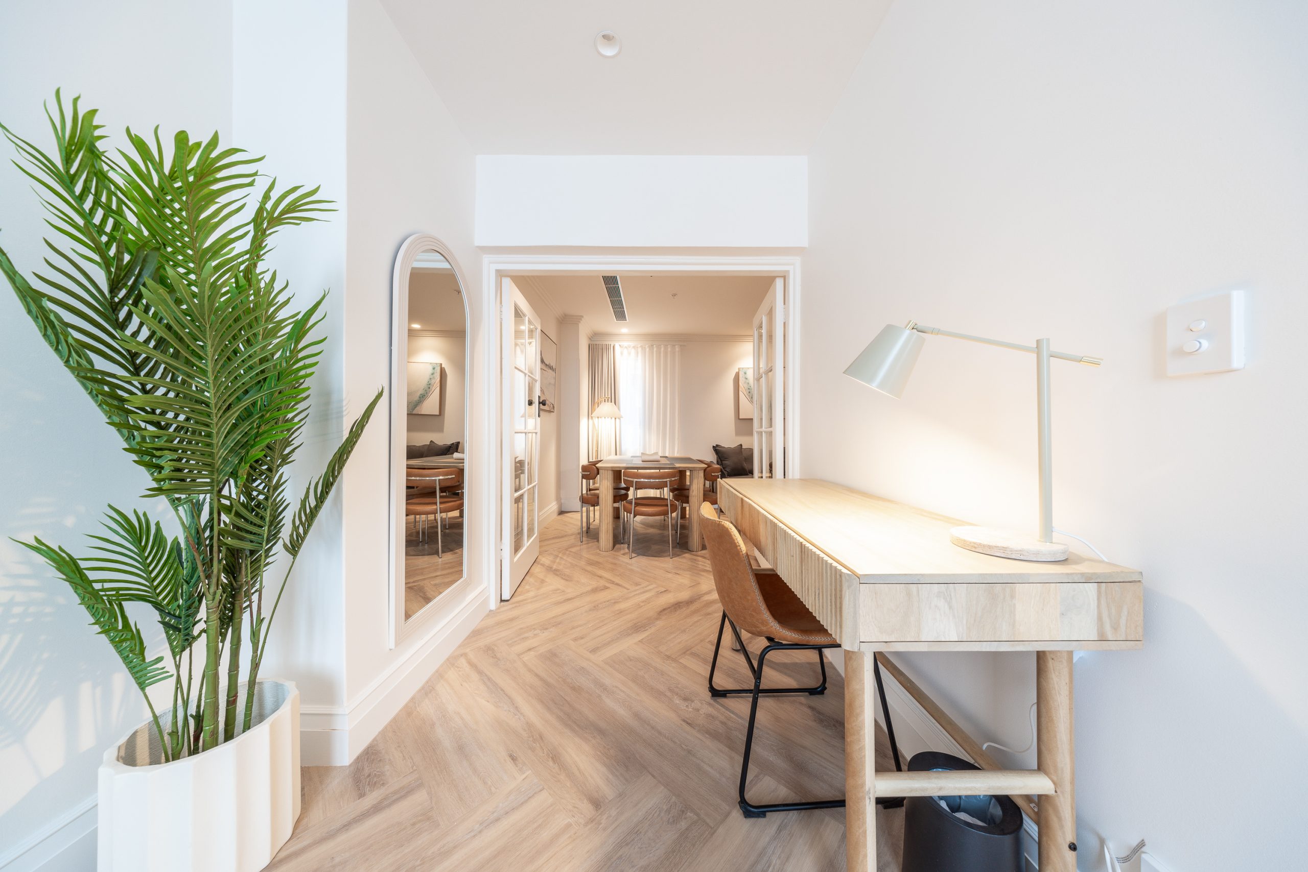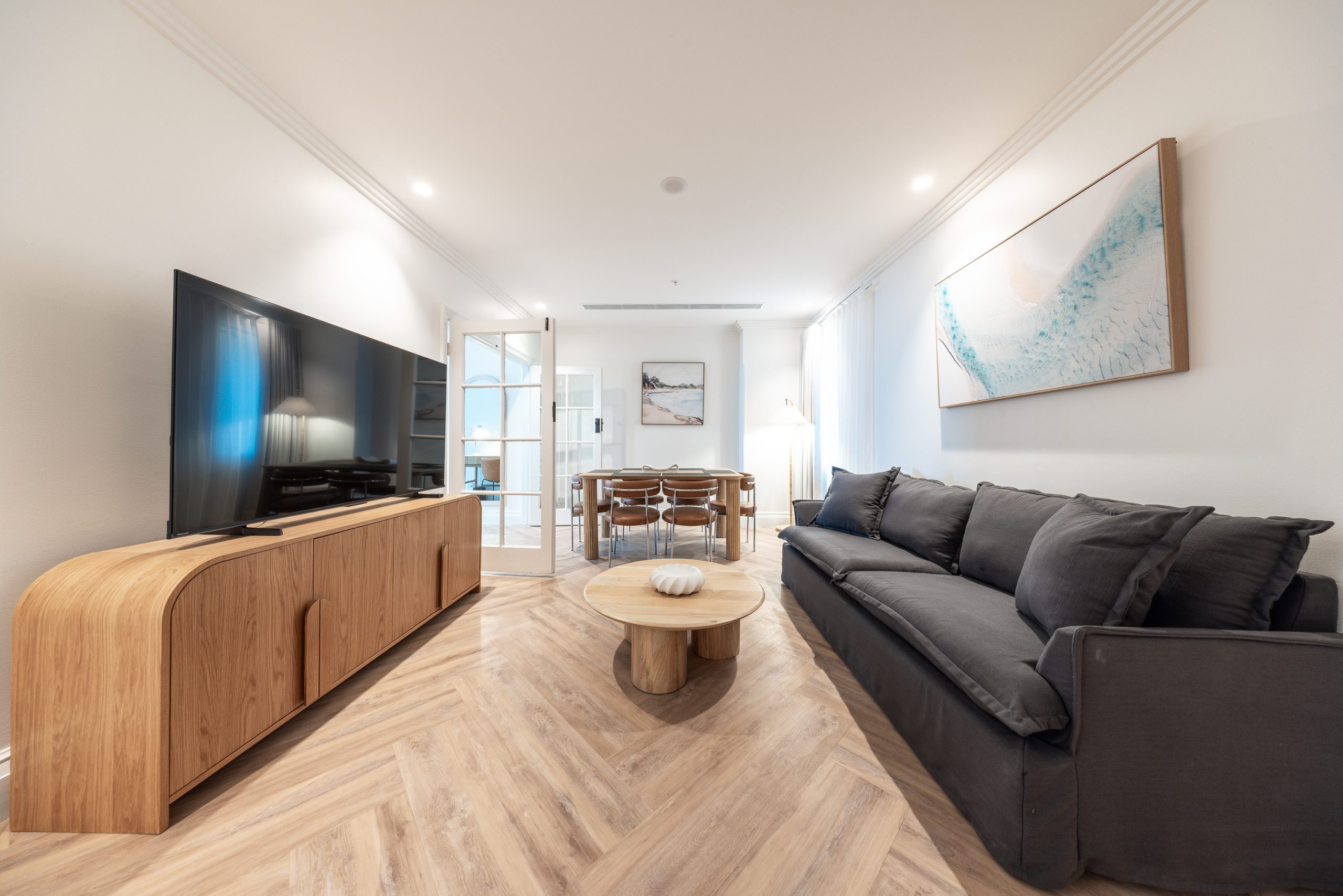 Across all room types, guests will enjoy dual air conditioning, complimentary Wi-Fi, and Smart TVs for easy entertainment. Each apartment includes a fully equipped kitchen with complete cooking facilities, a full-sized refrigerator, and an espresso and tea machine stocked with complimentary essentials—perfect for a self-contained stay. Built-in wardrobes in every bedroom ensure ample storage, while the inclusion of study and dining spaces makes these apartments especially suited to extended stays or remote work.