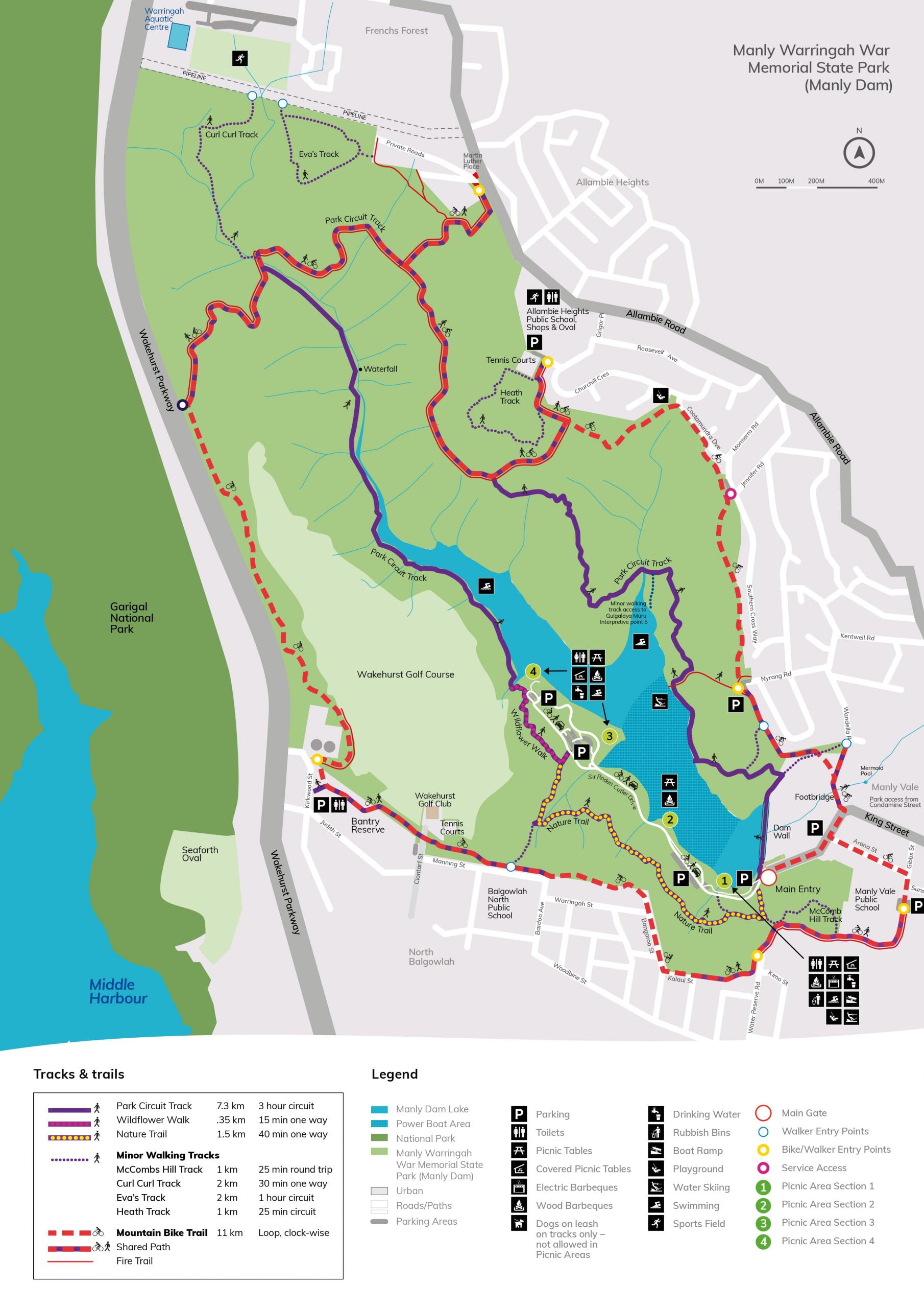 These two trails form part of the Manly Dam circuit walk which is marked as Park Circuit Track.