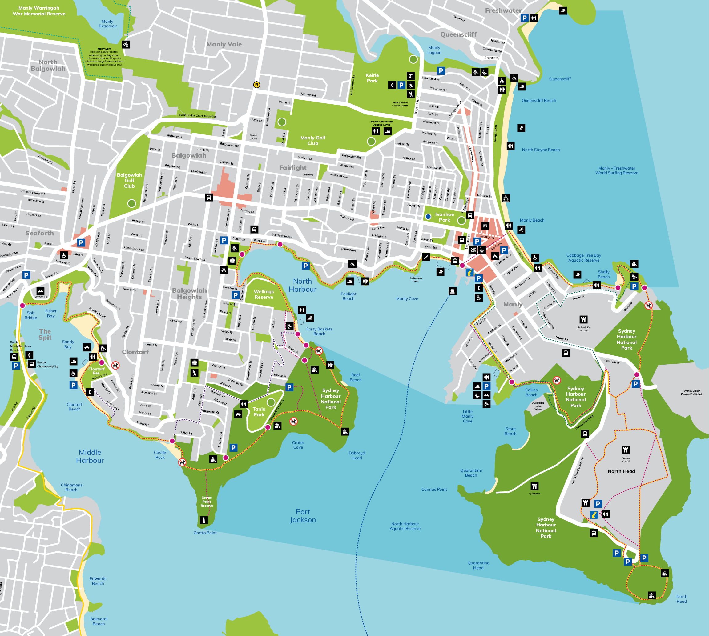 To complete the Manly Scenic Walkway in the opposite direction, start at Manly Wharf, just outside the ferry terminal. Make sure you call in at the Manly Visitor Information Centre to pick up your free copy of the Manly to Spit Bridge walk.