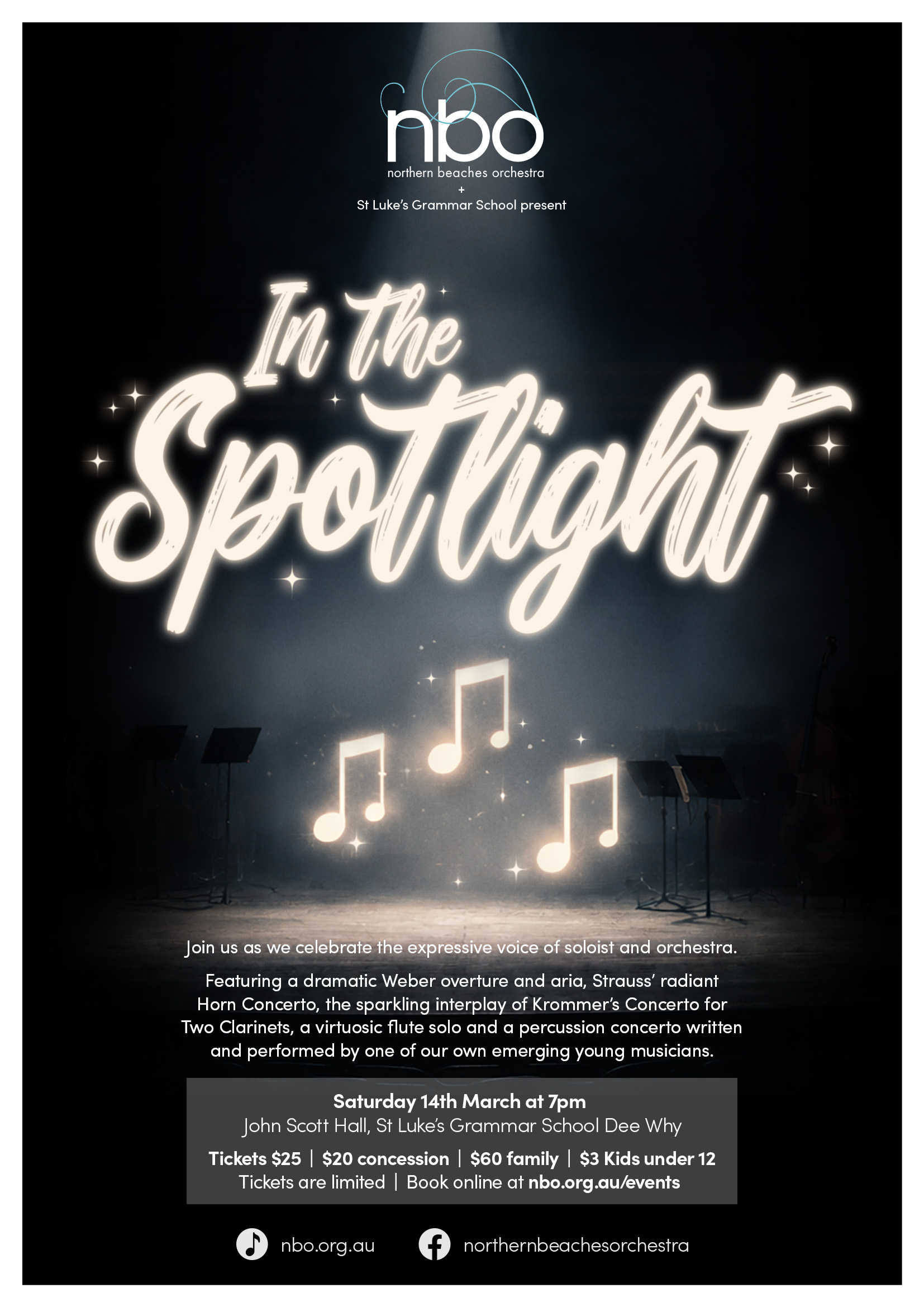 Featuring a dramatic Weber overture and aria, Strauss’ radiant Horn Concerto, the sparkling interplay of Krommer’s Concerto for Two Clarinets, a virtuosic flute solo and a percussion concerto written and performed by one of their own emerging young musicians.