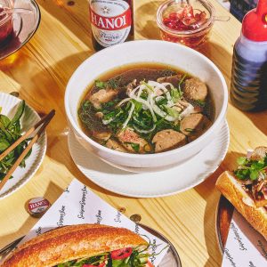 To drink, diners can enjoy Vietnamese iced coffee, fresh young coconut juice, kombucha from Byron Bay’s Good Happy, soft drinks and a small selection of local and Vietnamese beers.