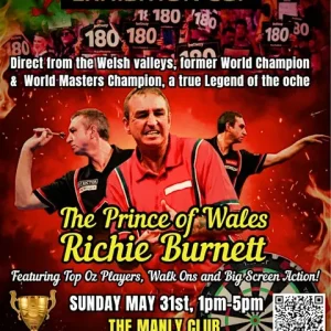 On May 31st The Manly Club will be graced by absolute darting royalty. They have a man who has etched his name into the very fabric of this great sport. A player who has seen it all, done it all, and thrilled audiences around the globe for decades.